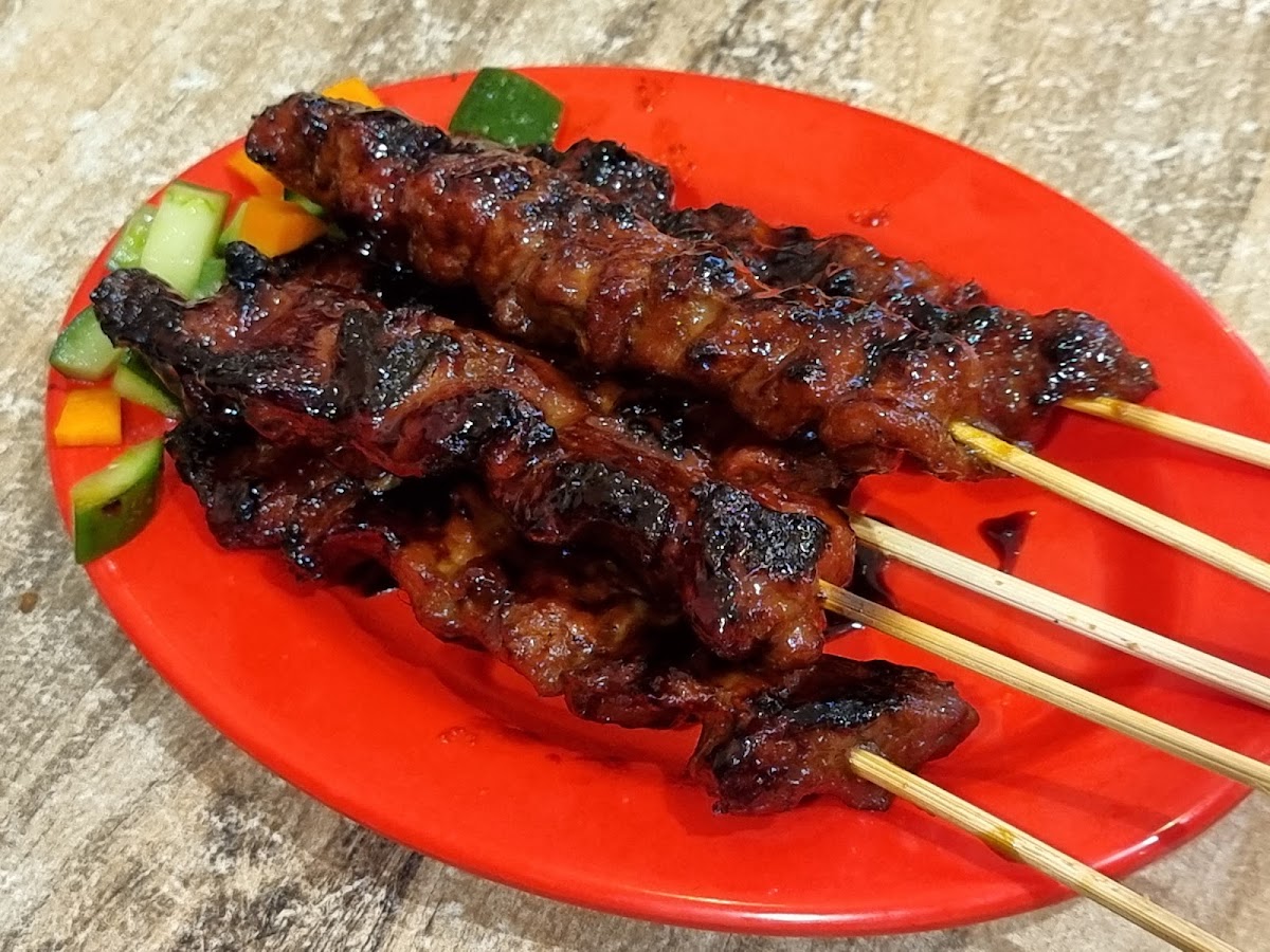 Grilled skewers of Sate Kambing (goat satay) and Sate Ayam (chicken satay) are staples of Indonesian street food. The skewers are perfectly marinated and grilled, offering a smoky flavor that complements the tender meat.