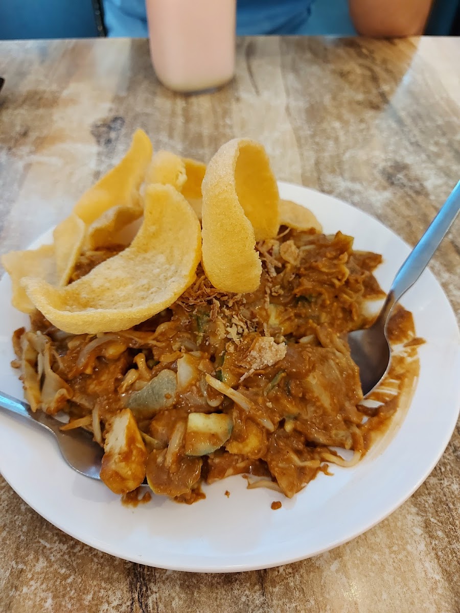 Ketoprak: A cold noodle dish with tofu, rice cakes, and a peanut sauce dressing, offering a perfect balance of textures and flavors.